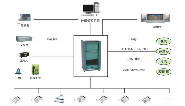 接口丰富,信令齐全:具有E1、E/M、载波、磁石等多种接口;E1中继有No.1、No.7、PRI、R2、V5等信令。